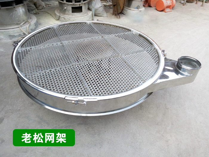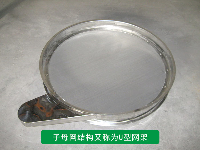 是篩選粉體的旋振篩常用的網(wǎng)架。該網(wǎng)架是先用壓網(wǎng)工具把粗絲徑的篩網(wǎng)固定在U型槽內(nèi),這層篩網(wǎng)稱之為目網(wǎng),再將工作網(wǎng)固定平鋪在目網(wǎng)上邊,用卡箍固定四周。