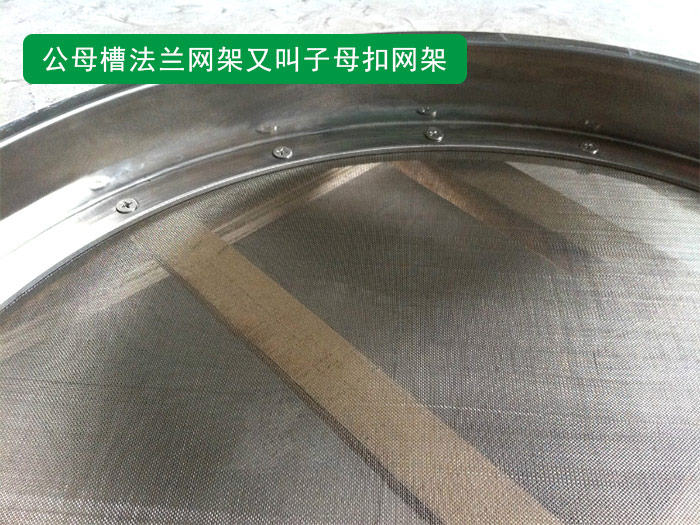公母槽法蘭網(wǎng)架又叫子母扣網(wǎng)架,就是兩個(gè)法蘭一個(gè)凹槽,一個(gè)凸槽,把凸槽法蘭焊接在篩框的內(nèi),以凹槽法蘭為活動(dòng)件,將篩網(wǎng)放置在兩個(gè)法蘭中間的位置,用螺絲鎖緊使得篩面自然拉緊平展,一般12目-30目的篩網(wǎng)采用才會(huì)采用這種結(jié)構(gòu)。